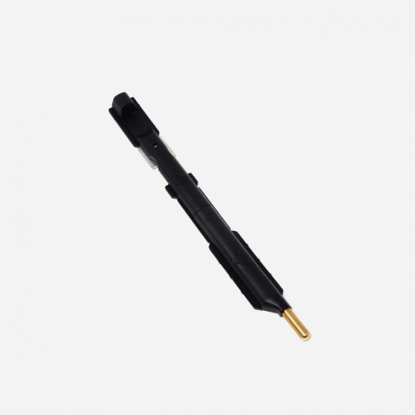 Handling body, connecting plate, terminal body in nylon with fibreglass, positioning block in galvanized zamak; end pin in brass, M5 set screw in steel. With brass pin. Pin ø 6 mm non-centered LH