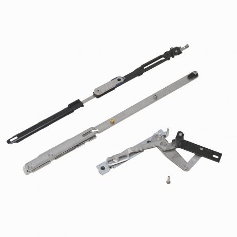 Palancas y pernios en acero inoxidable, cuerpo de apoyo y regulación en zamak. Con brazo corto para puerta oscilo batiente. Para apertura a la derecha (puertas de 470 a 670 mm). Carga máxima 130 kg - 150 kg en combinación con 3310.50