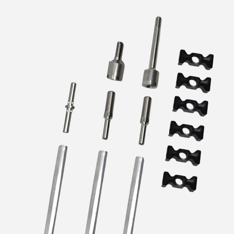 Varillas de aluminio extruido, guía de varilla de nailon; Punta, adaptador M6/M8 y conector de acero inoxidable. Longitud de la varilla 1200 mm. En combinación con las manijas Art. 4101.10-4101.11-4101.12