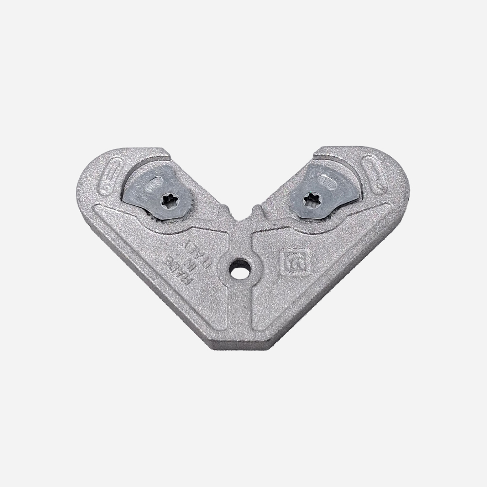 Escuadras en aluminio de fundición; excéntricos en zamak. Permite bloquear pérfiles ya sean ángulares, unión en T o en cruz. Dimensiones 5,5 x 17 mm