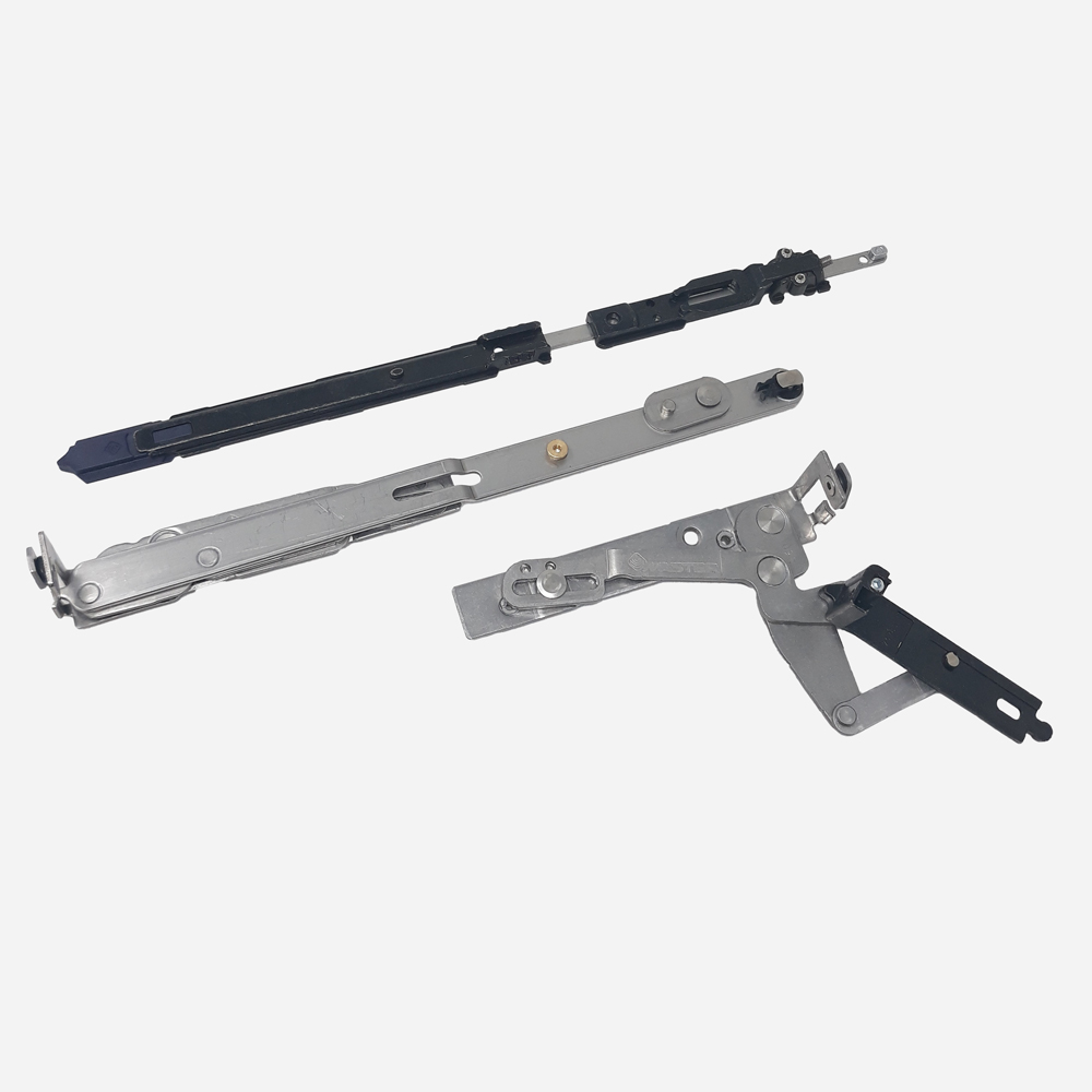 Dźwignie i drążki ze stali nierdzewnej, wspornik i korpus regulacji ze znalu. Z krótkim ramieniem do skrzydeł rozwierno-uchylnych „uchył przed rozwarciem” (LOGICA). Do otwierania lewego (skrzydła od 470 mm do 670 mm). Maksymalne obciążenie 130 kg - 150 kg w połączeniu z 3310.51 - 180 kg w połączeniu z 3310.50+1211 (z ograniczonym otwarciem 90°).