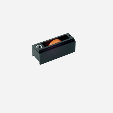 Dado, grano e vite di regolazione in acciaio zincato; corpo carrello in nylon; cuscinetti a sfera. Portata 50 kg per anta, 1 cuscinetto, 3 posizioni
