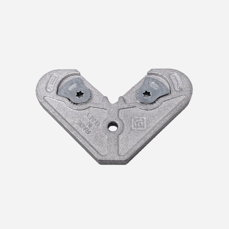 Squadretta in alluminio pressofuso; eccentrici in zama. Permette il bloccaggio di profili sia angolari sia come giunzione a T e a Croce. Dimensioni 5,5x17 mm.