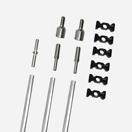 Ekstrüde alüminyum çubuklar, naylon çubuk kılavuzu; uç, M6/M8 adaptör ve paslanmaz çelik bağlantı elemanı. Çubuk uzunluğu 1200 mm. 4101-4101.1-4101.2 numaralı saplarla uyumludur.