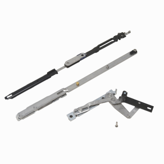 Sürgü ve bağlantı çubukları paslanmaz çelik, destek ve ayar gövdesi zamak. Önce devir sonra aç çift açılım için uzun makas Sol açılım için (kanat genişliği 671 mm'den 1700 mm'ye kadar) Maksimum kapasite: 3310.50 ile kombinasyon halinde 130 Kg - 150 Kg