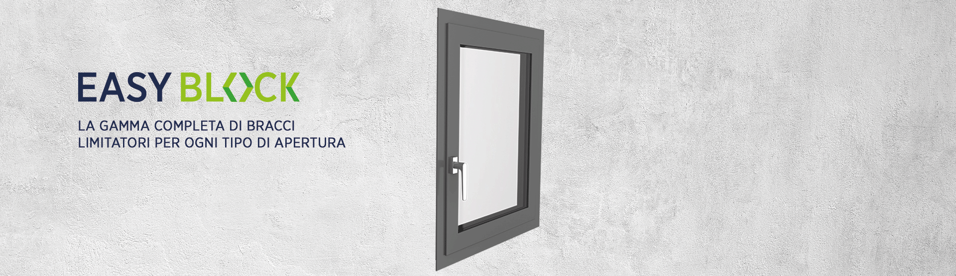 EASY BLOCK è la gamma completa di bracci limitatori applicabile ad ogni tipologia di apertura e adatta alle architetture moderne, in genere caratterizzate da infissi di grandi dimensioni con pesi e ingombri importanti.