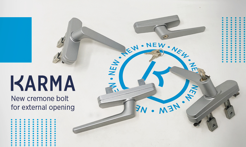 The KARMA line offers a wide range of solutions: window handles, cremone bolts, lift&slide handles, double handles. The products are available in different version: minimal design, classic, with key, logic operation, with offset handle.
