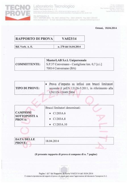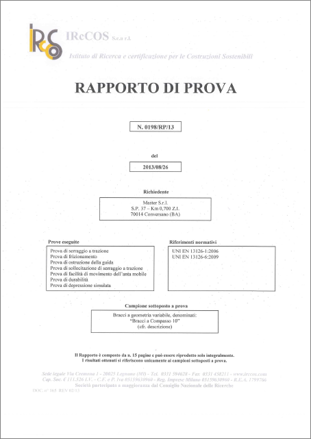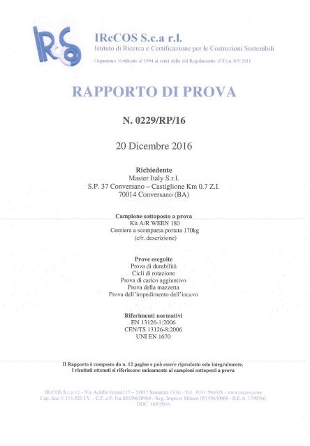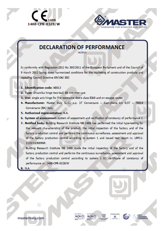 Dinamika - Paumelle pour portes - Declaration of performance CE – Ref. Ist. Giordano